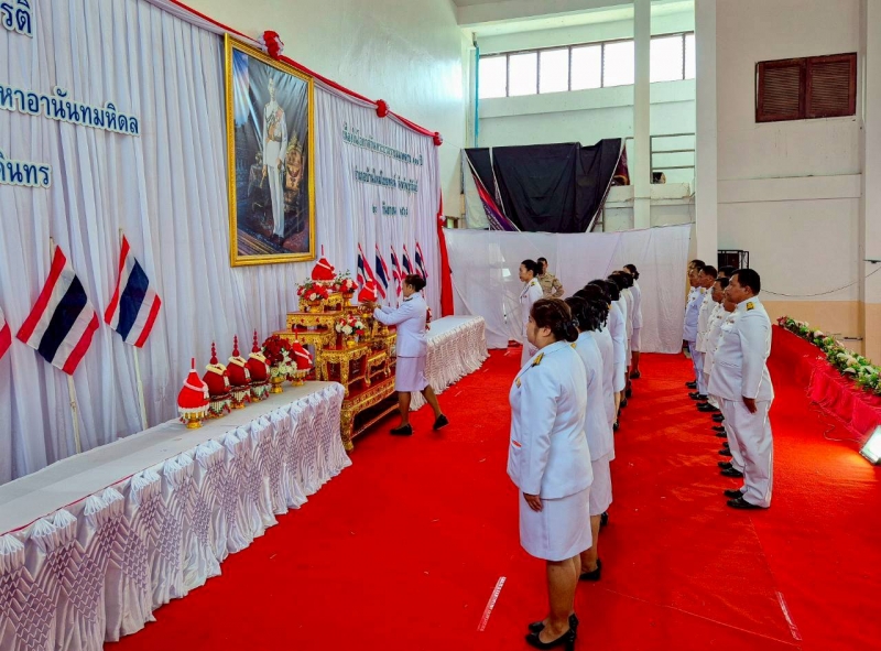 - เวลา ๐๘.๓๐ น. พิธีวางพุ่มดอกไม้ถวายราชสักการะ