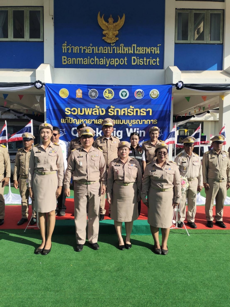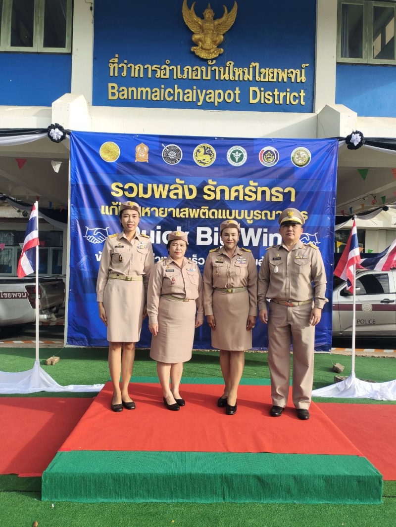 นางสาวณัฐนันท์ หูไธสง นายกองค์การบริหารส่วนตำบลหนองแวง นางสาวบุญรัตน์ ทัฬหนิรันดร์ ปลัดองค์การบริหารส่วนตำบลหนองแวงและหัวหน้าส่วนราชการ องค์การบริหารส่วนตำบลหนองแวง เข้าร่วมกิจกรรม โครงการ "รวมพลัง รักศรัทธา แก้ปัญหายาเสพติดแบบบรณาคาร" Quick Big Win จัดกิจกรรมโดยศูนย์ปฏิบัติการป้องกันและปราบปรามยาเสพติด อําเภอบ้านใหม่ไชยพจน์ ณ หน้าทีว่าการอําเภอบ้านไหม่ไชยพจน์ จังหวัดบรีรัมย์